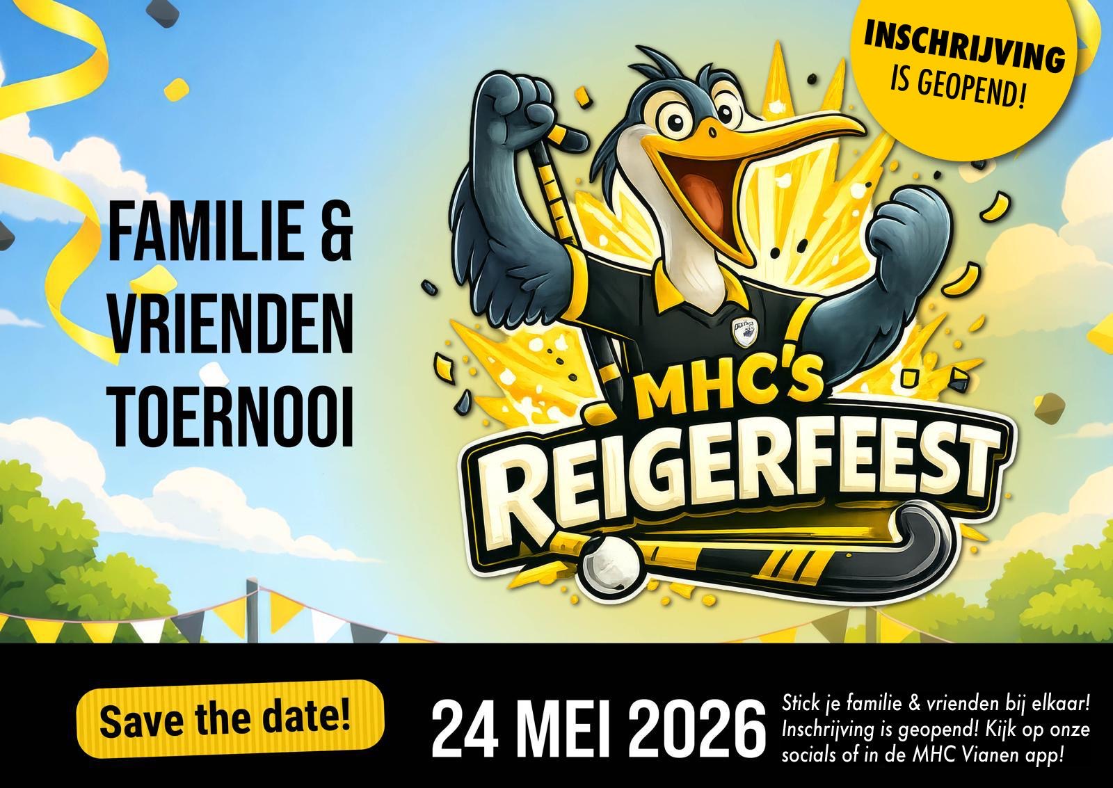 🏑 MHC’s Reigerfeest komt eraan: hét Familie & Vrienden Toernooi van het jaar op 24 MEI 2026!